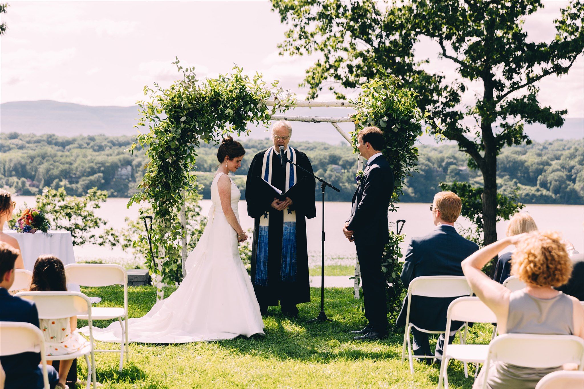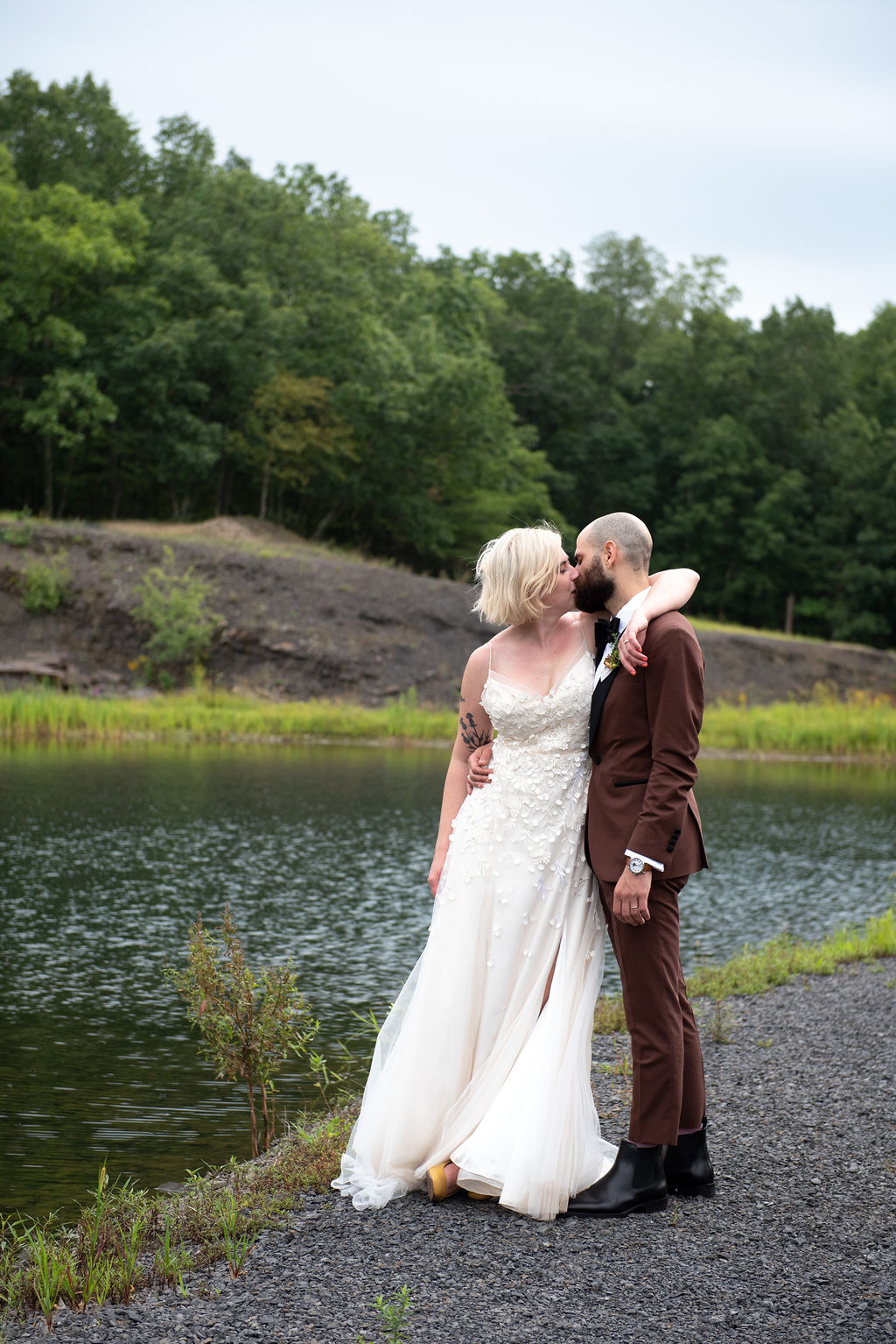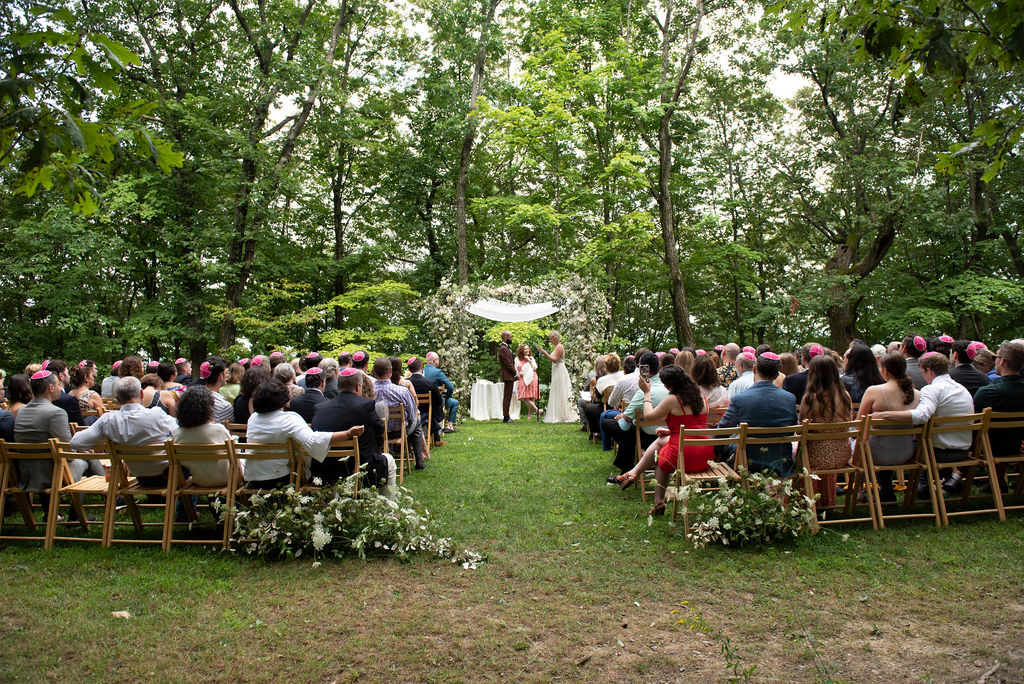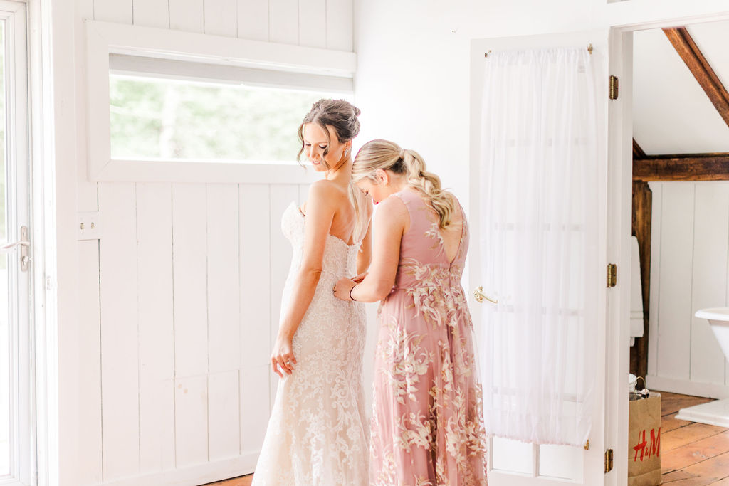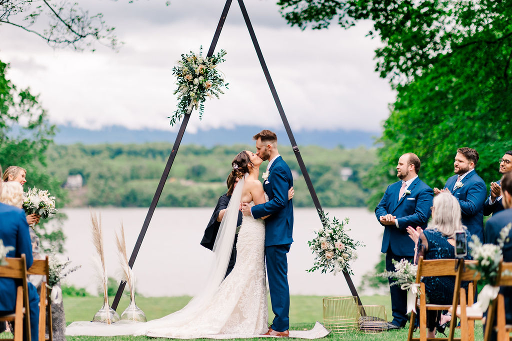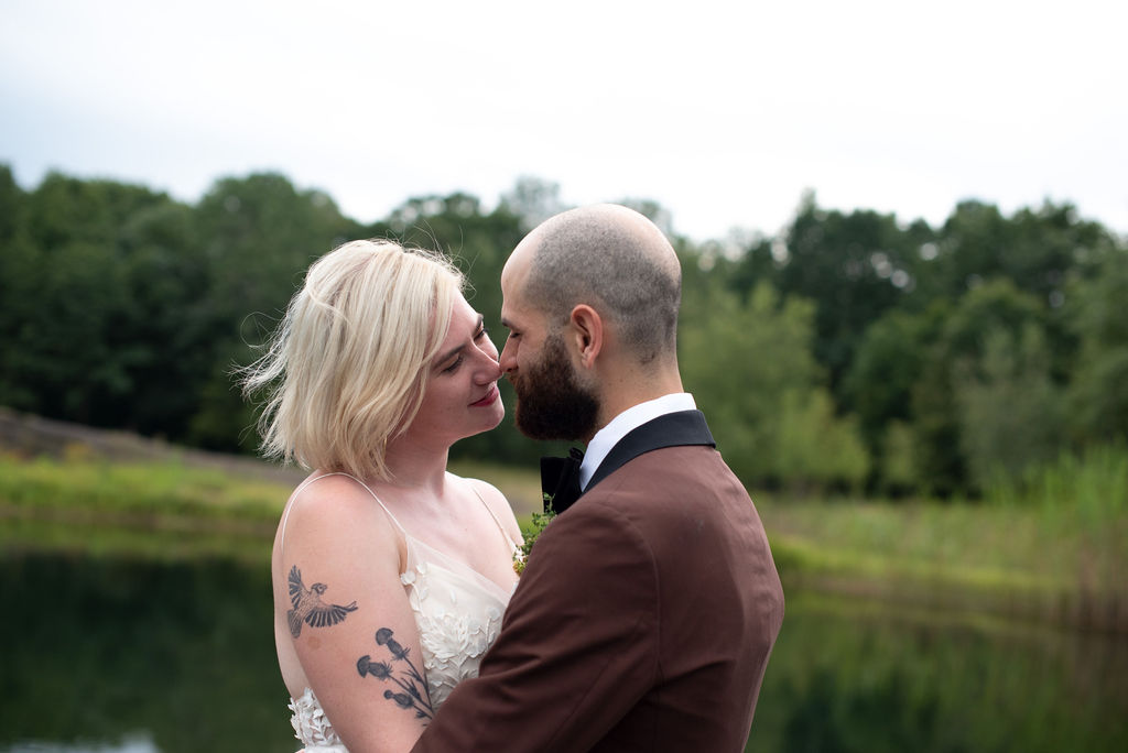 Rachel and Nate were married on a summer day at Gather Greene in Coxsackie, NY. We loved the climbing floral installation on the concrete wall, and Rachel’s gorgeous lace dress!