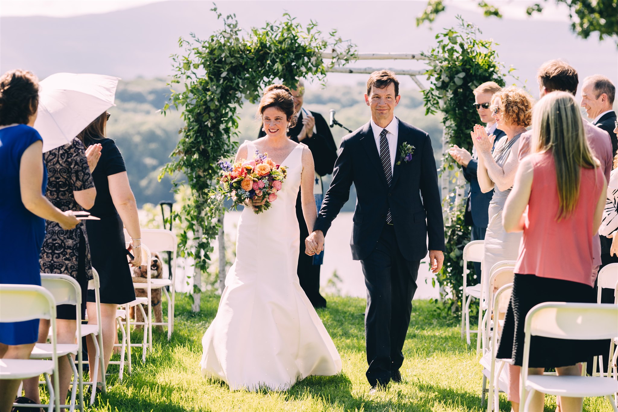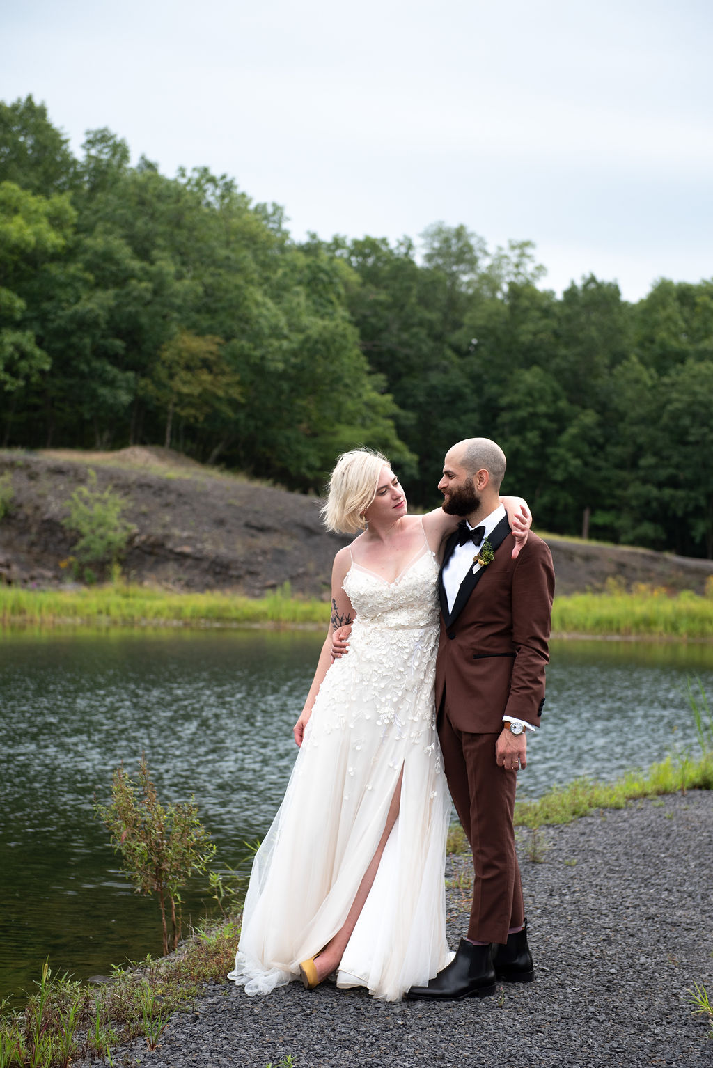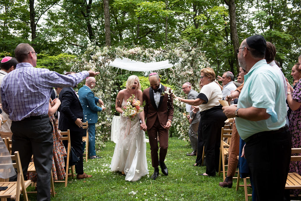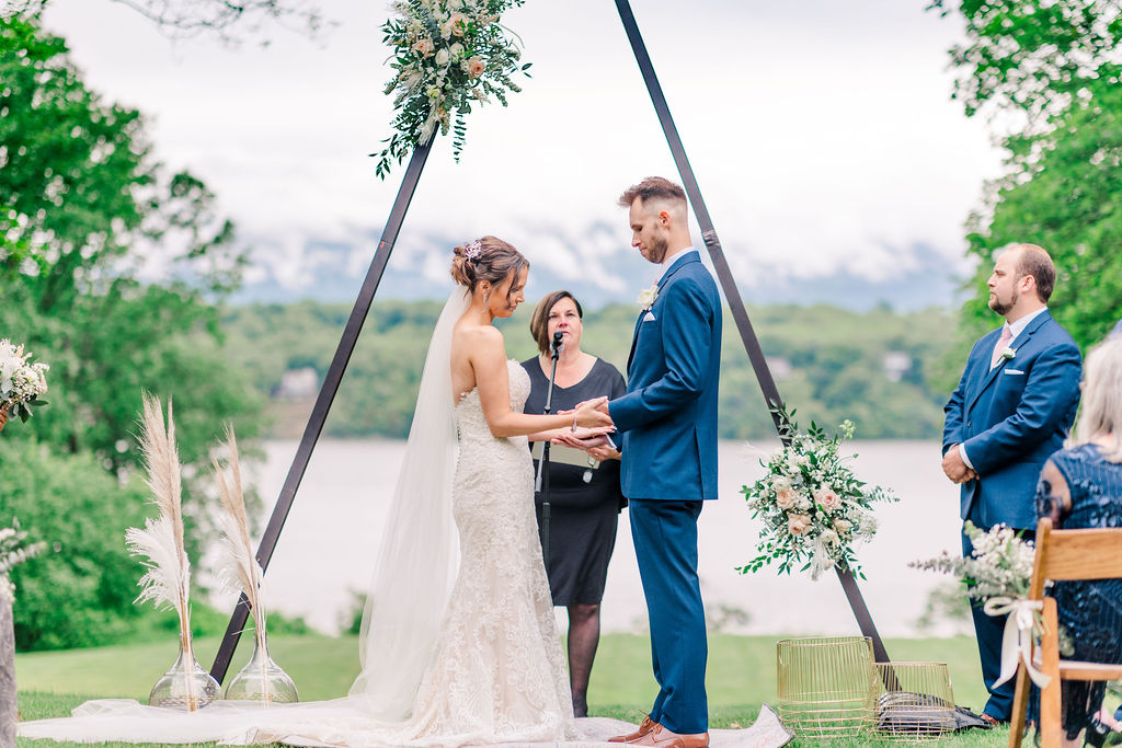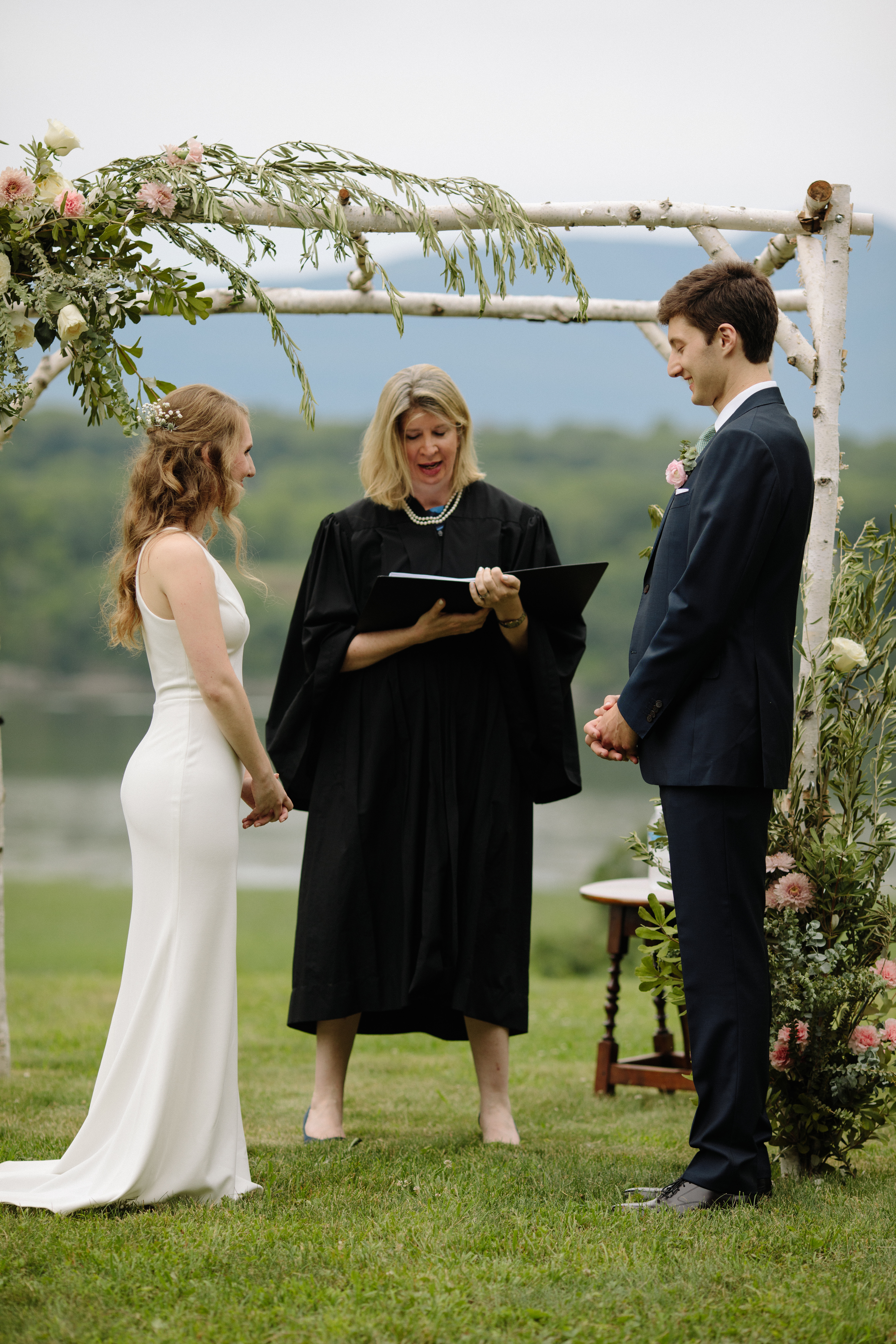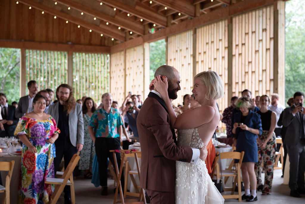 Rachel and Nate were married on a summer day at Gather Greene in Coxsackie, NY. We loved the climbing floral installation on the concrete wall, and Rachel’s gorgeous lace dress!