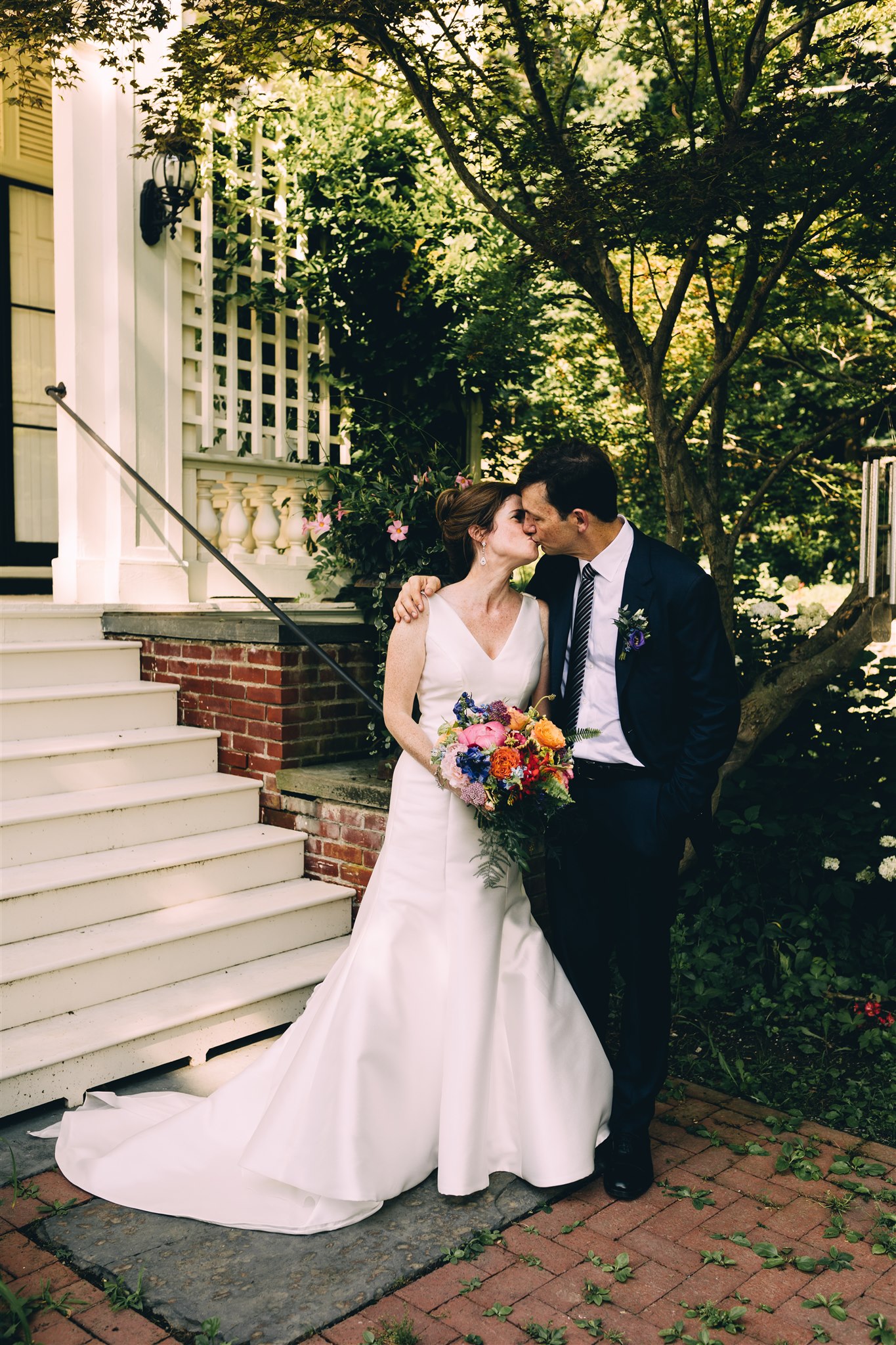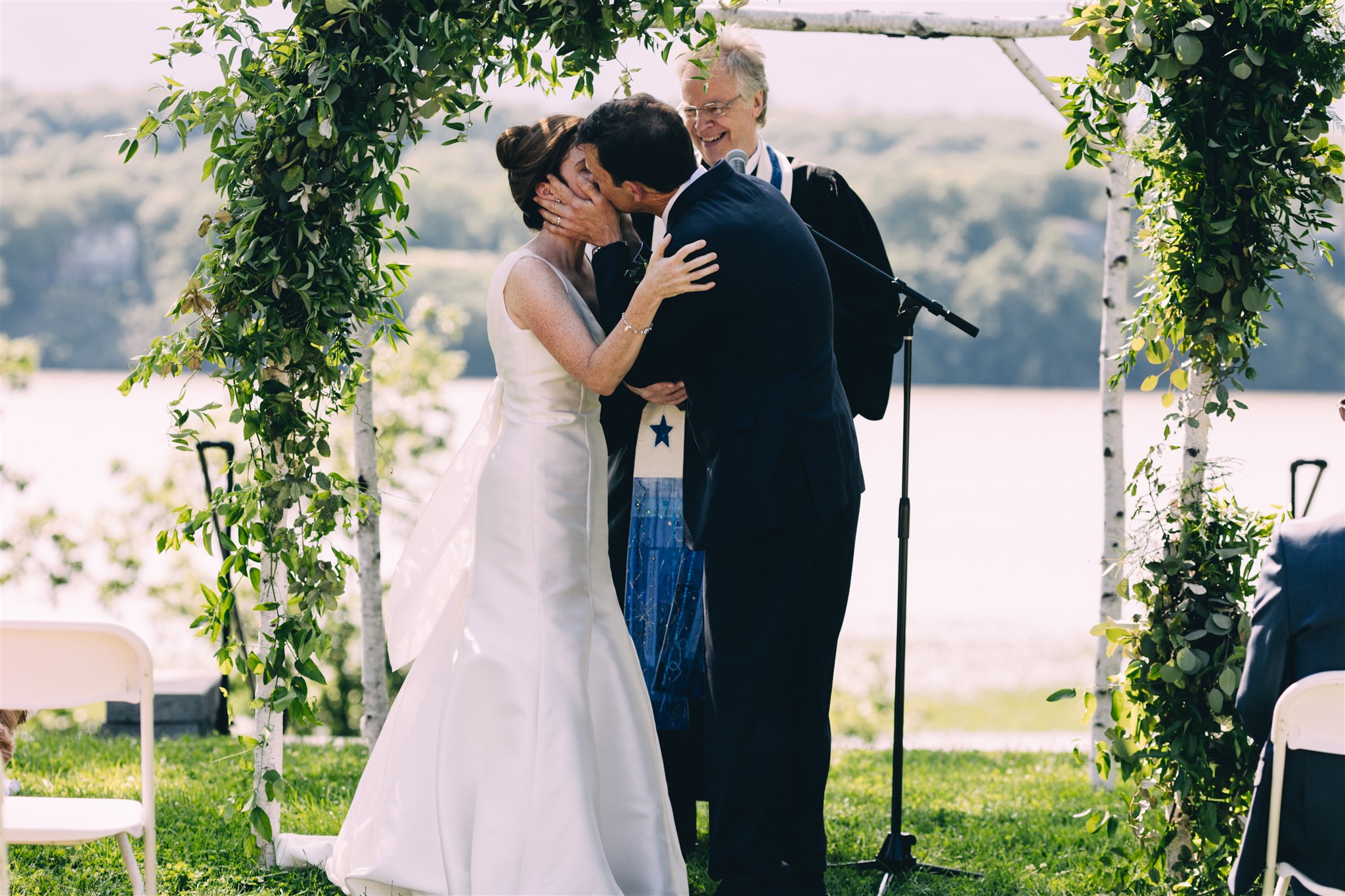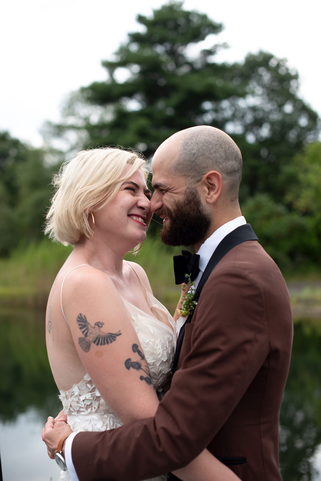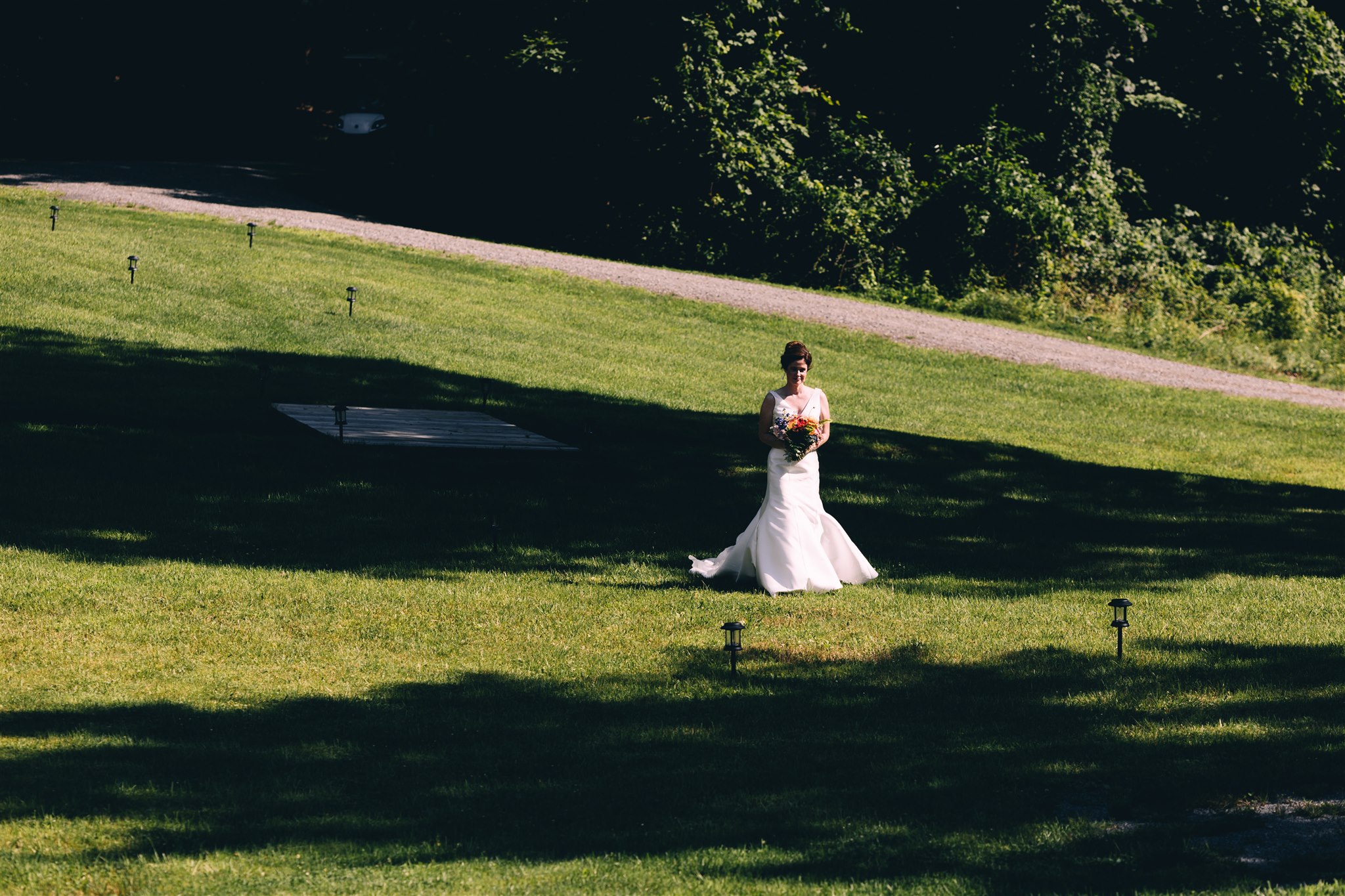 Rachel and Nate were married on a summer day at Gather Greene in Coxsackie, NY. We loved the climbing floral installation on the concrete wall, and Rachel’s gorgeous lace dress!