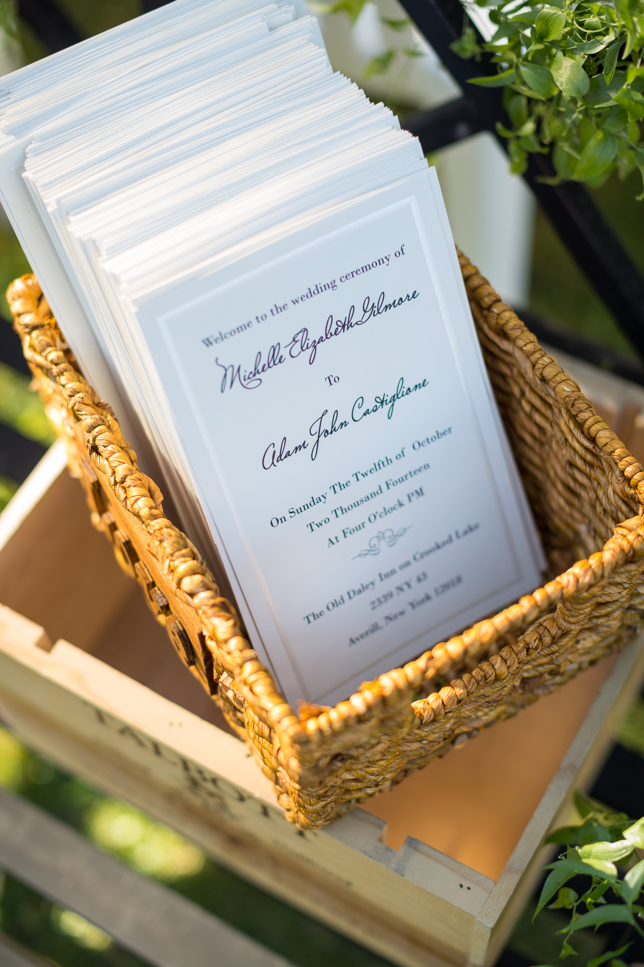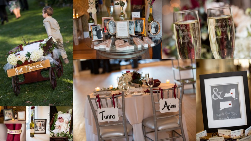 This rustic wine and cheese themed wedding in Averill Park NY captured our hearts. The love and attention to detail shone through in every image captured of the day. Michelle and Adam put so much thought into all of the aspects of their wedding; from the colors of their mother’s dresses (burgundy like wine and green like the grape) all the way to the hand embossed wine crates used in the centerpieces. It was such a pleasure planning this wedding and helping to incorporate their theme into so many aspects of the wedding.